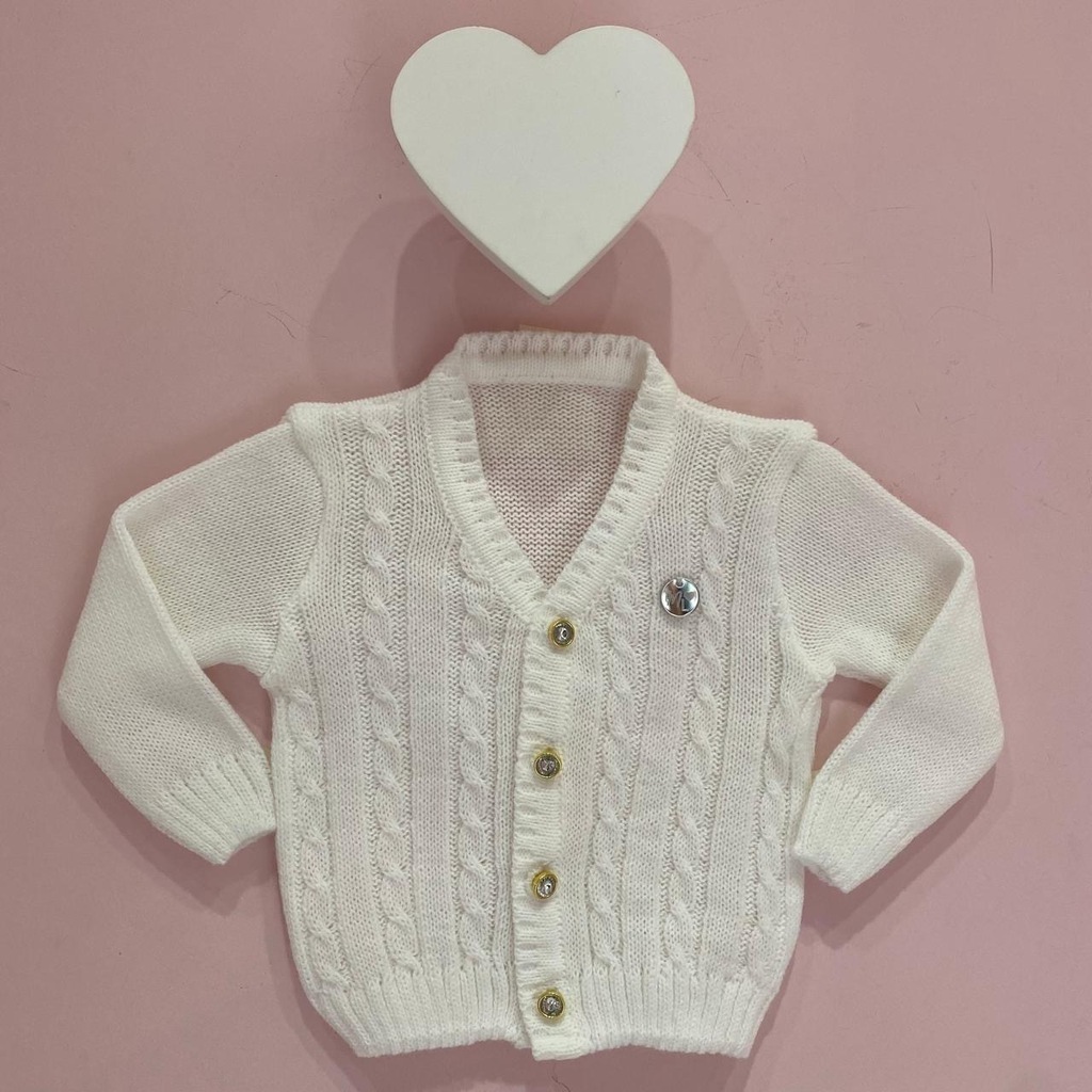 Descubre la elegancia y la calidez del Saquito de bebé tejido abotonado en un delicado color blanco. Este encantador saquito es perfecto para mantener a tu pequeño abrigado mientras agrega un toque de estilo a cualquier atuendo.