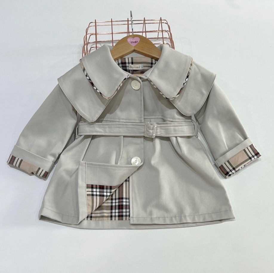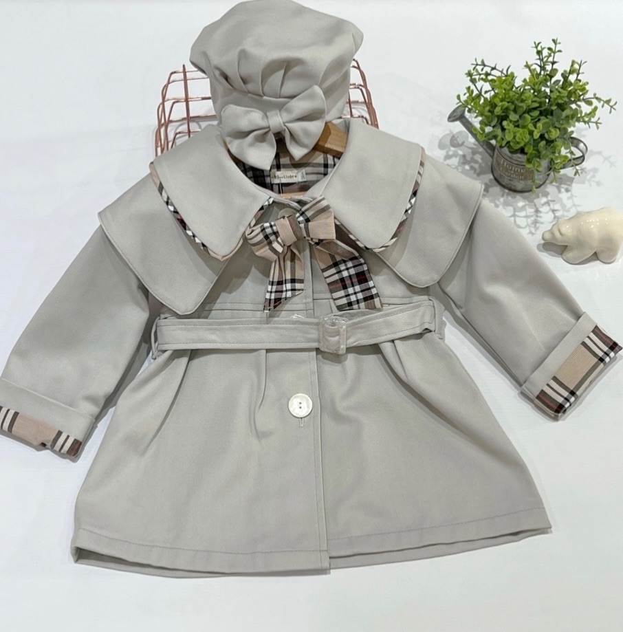 Tapado tipo trench unisex, con detalles de forro y moño cuadros .Este modelo es de corte grandecito te aconsejamos el talle correspondiente a la edad. Se regula en la cintura con cinturón y botones en nacar importados. También viene con un prendedor de moño del mismo material del forro, se puede sacar o poner. La modelo esta utilizando un talle 1-2 añitos, ella tiene casi 3 añitos.