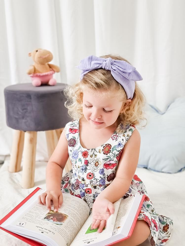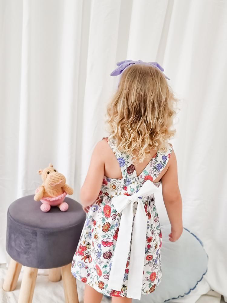 Vestido en poplin estampado con lycra floreado y moño en blanco